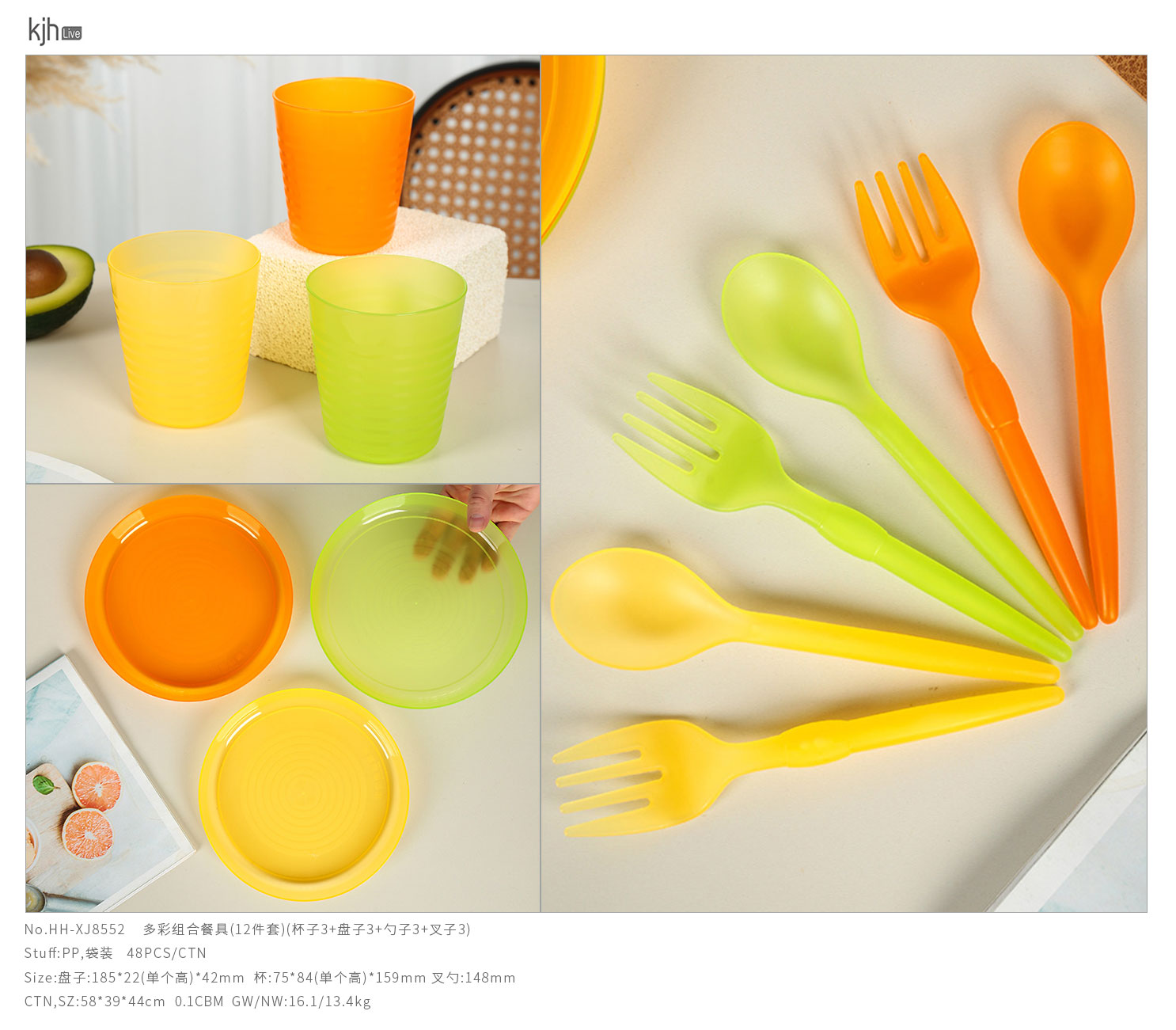 Size: 盤子:185*22(單個(gè)高)*42mm 杯:75*84(單個(gè)高)*159mm 叉勺:148mm