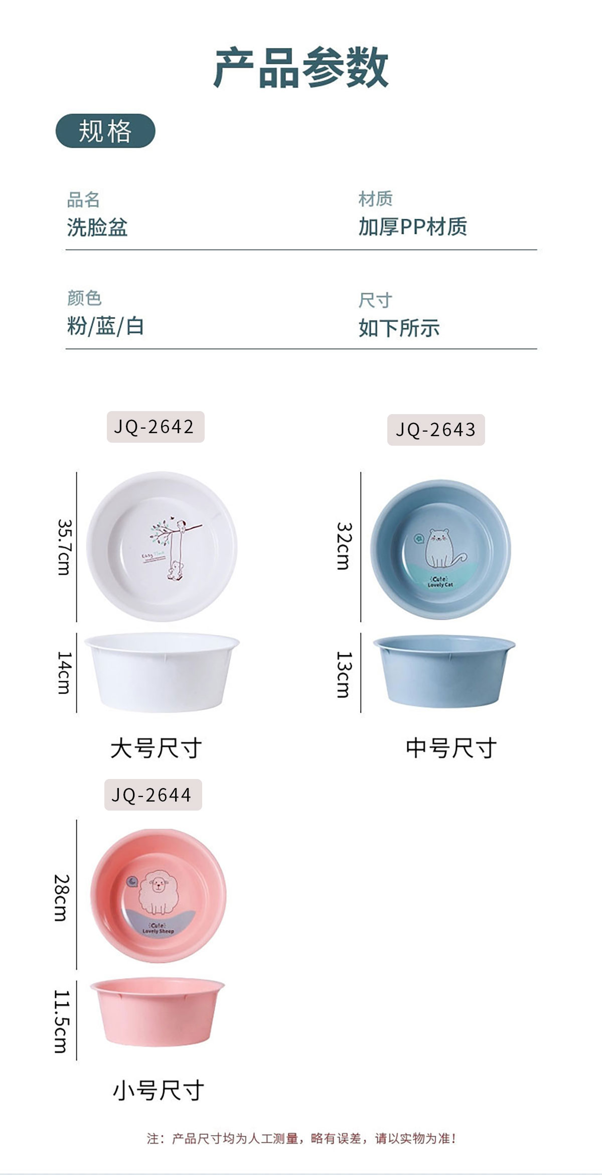大號/中號/小號臉盆(貓/兔/熊/羊/蕩秋千)