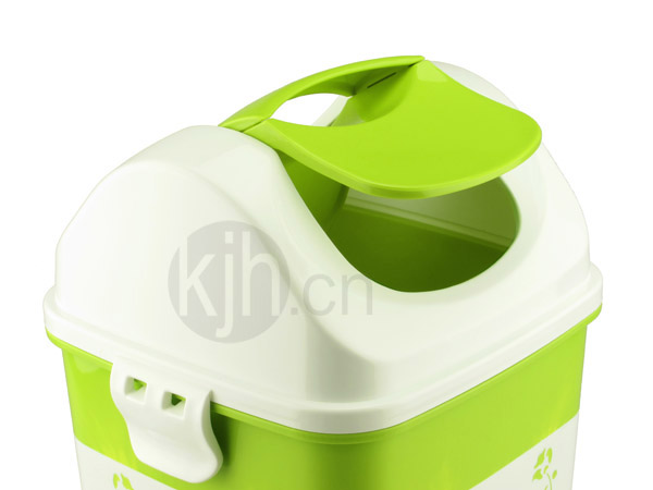 • 桶蓋采用手柄設(shè)計,輕碰桶蓋便會轉(zhuǎn)中,垃圾扔進(jìn)去就OK,蓋子自動復(fù)原。
