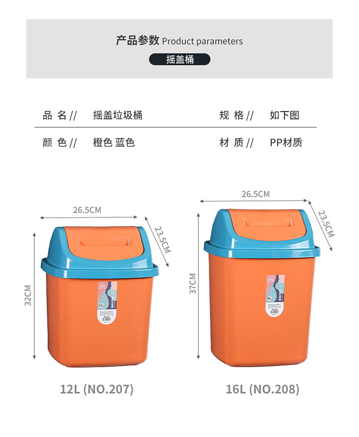 搖蓋垃圾桶(12升/16升)