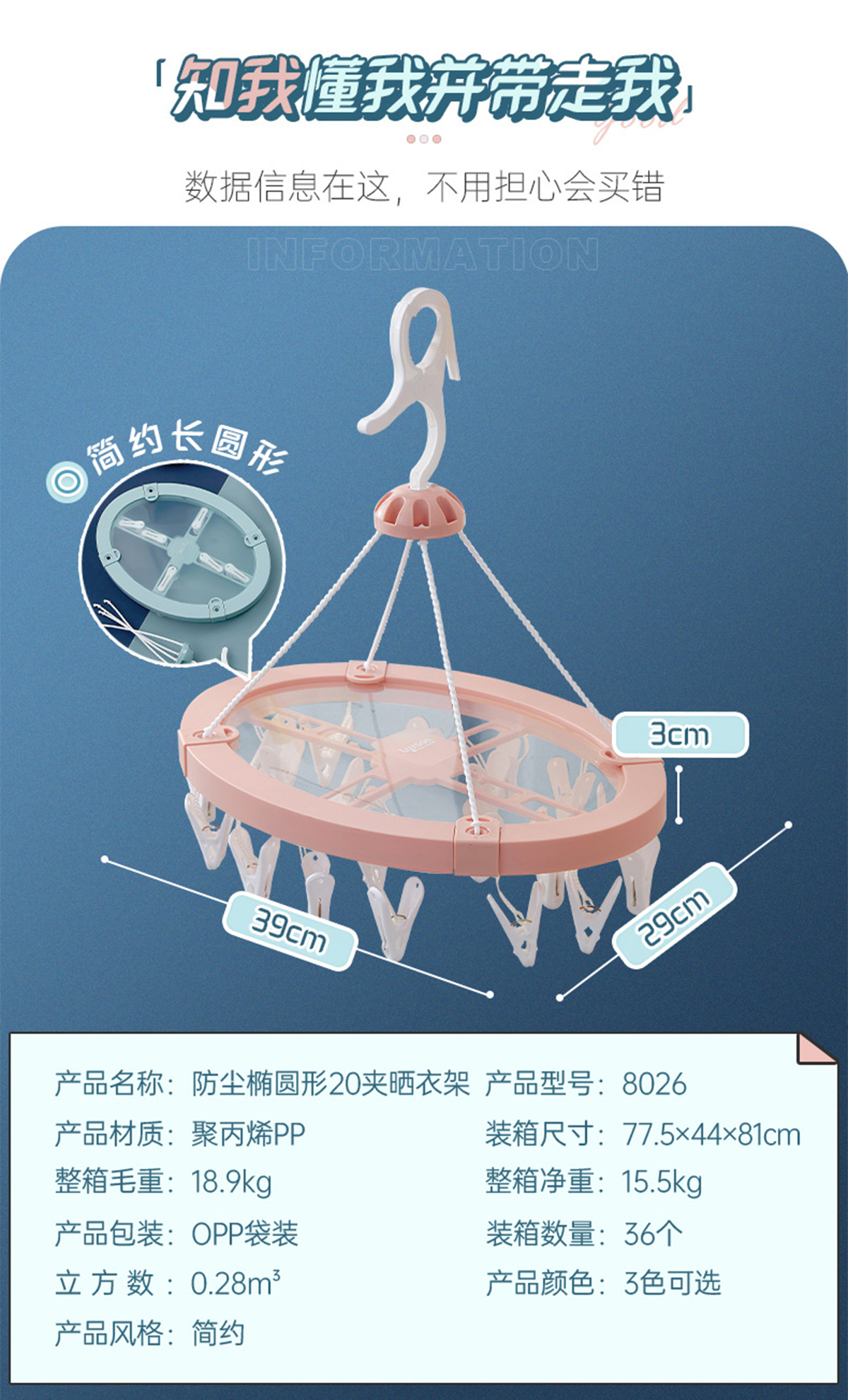 防塵橢圓形20夾晾衣架 2023年新色