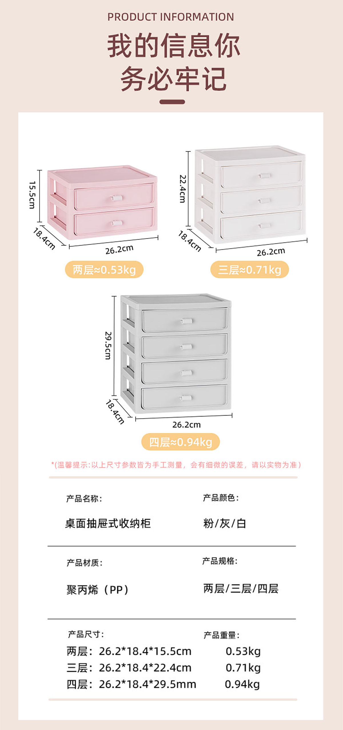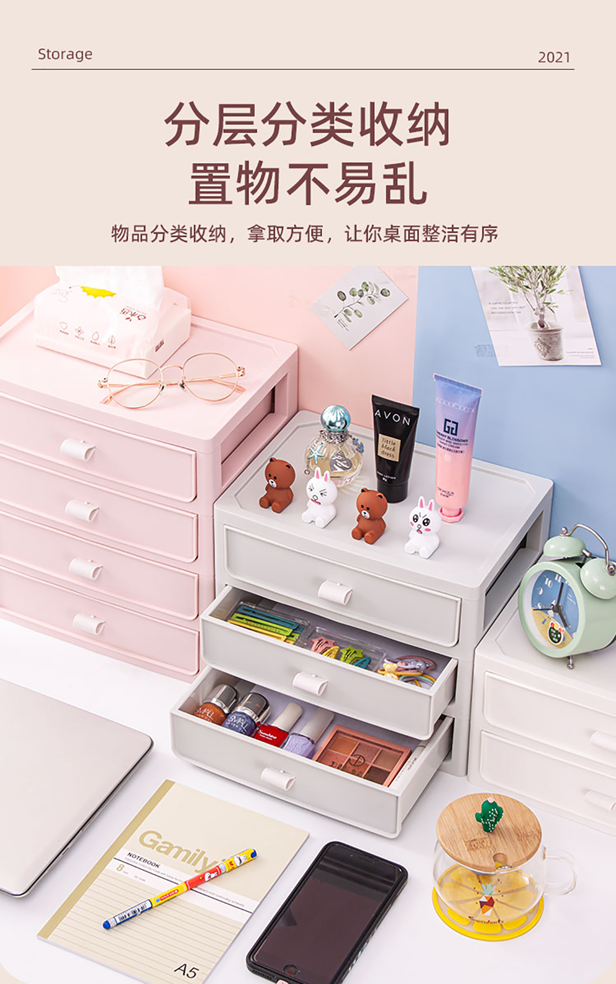 桌面收納柜(二/三/四層)+化妝品收納盒 實(shí)色款