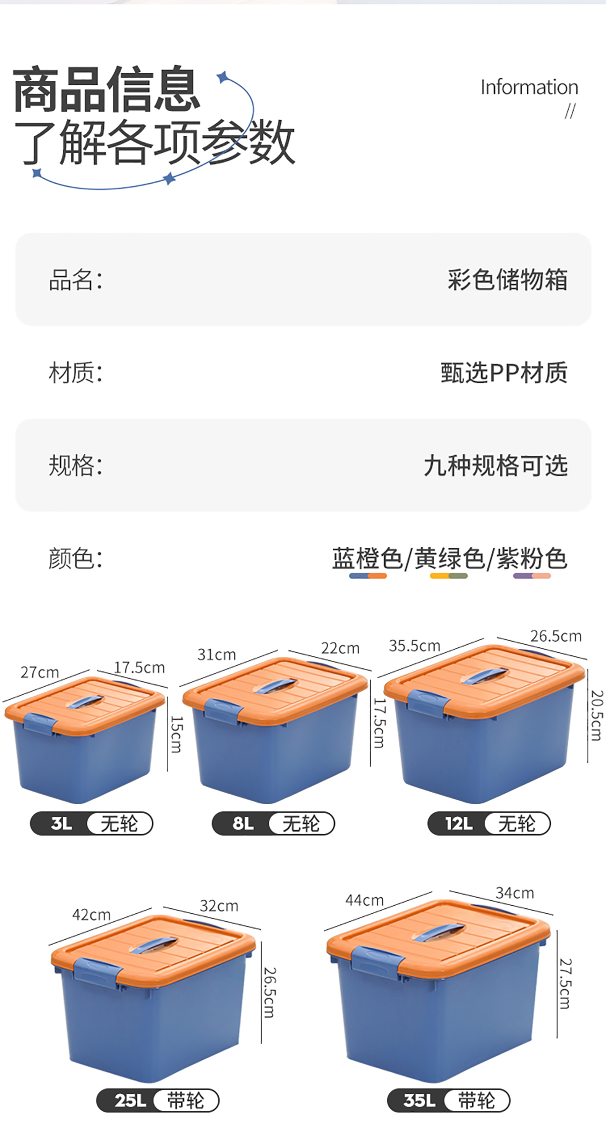 實(shí)色儲(chǔ)物箱3L/8L/12L/25L/35L/45L/55L/75L/100L