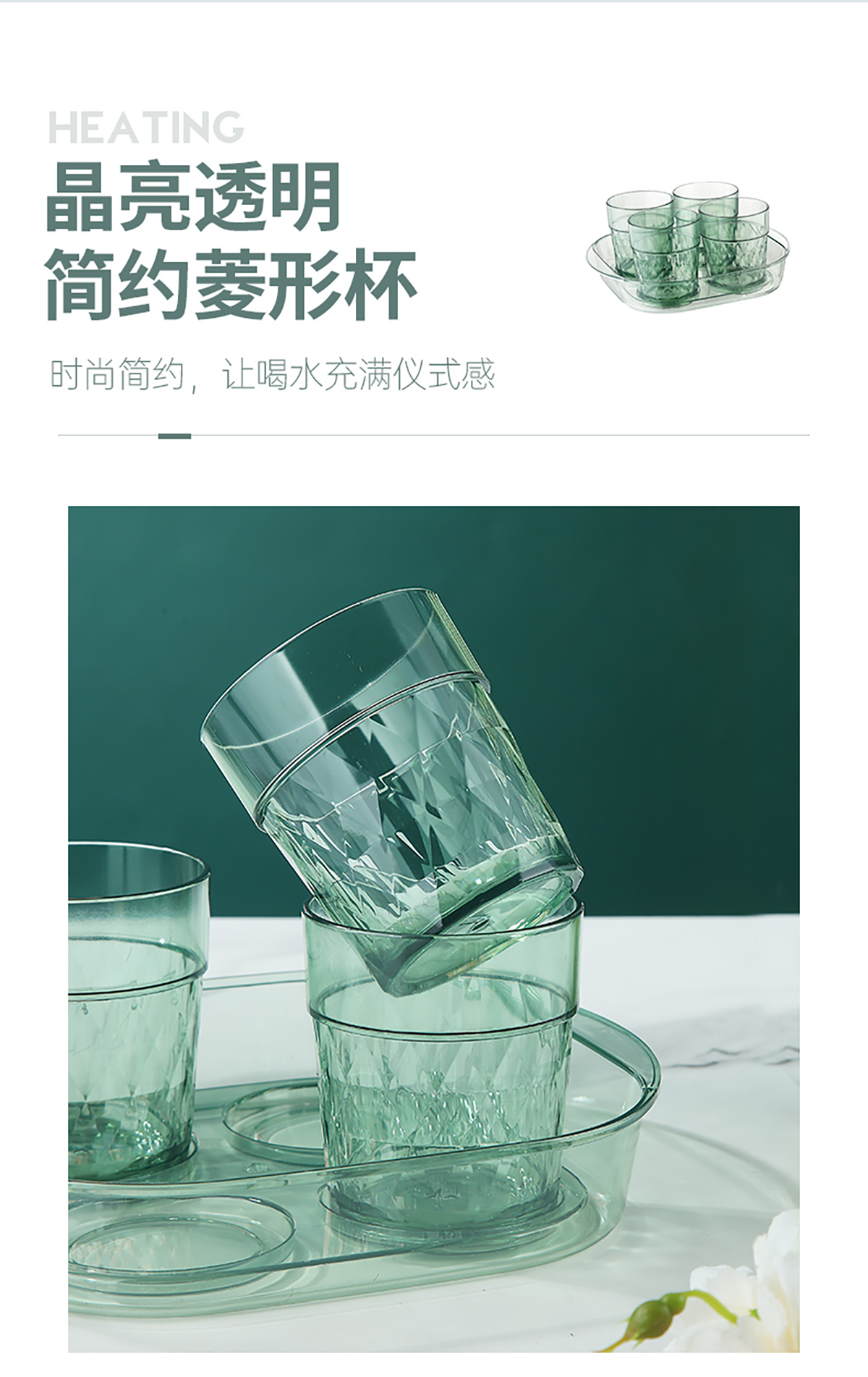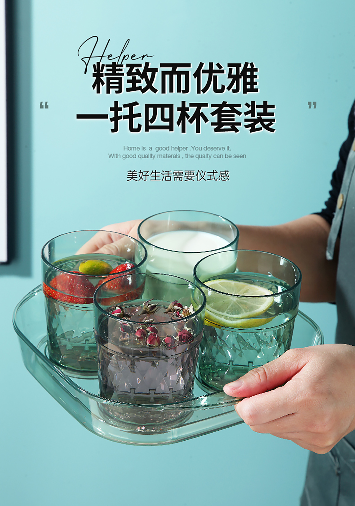 晶透水杯套裝(4杯+托盤)310mlx4