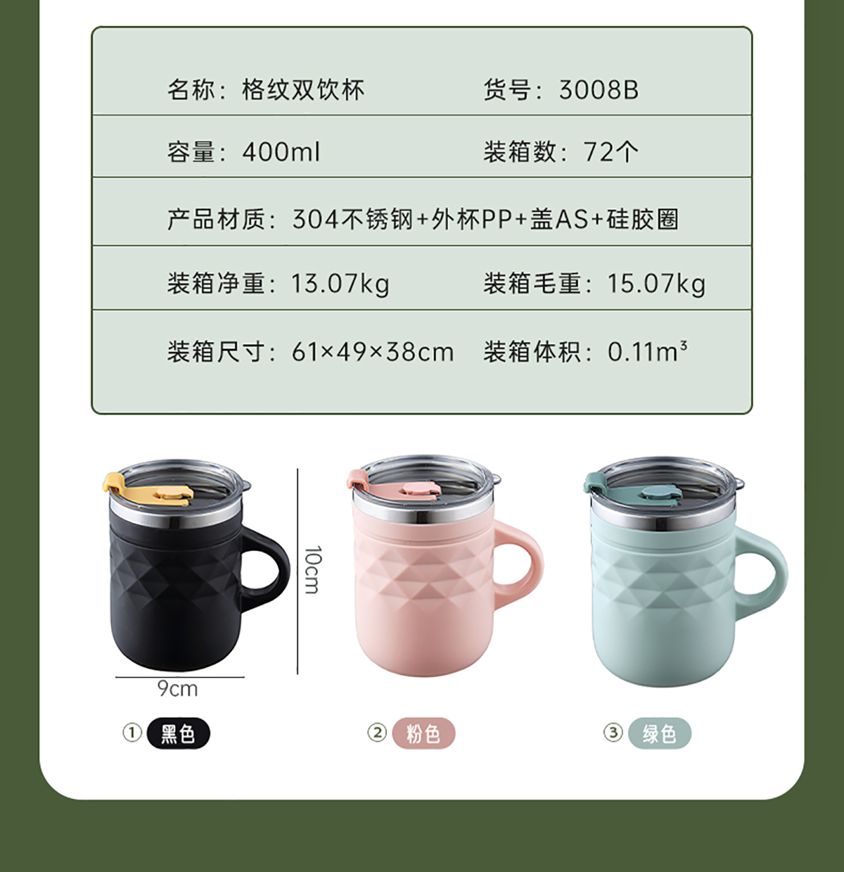 Stuff:304不銹鋼+外杯PP+蓋AS+硅膠圈/彩盒