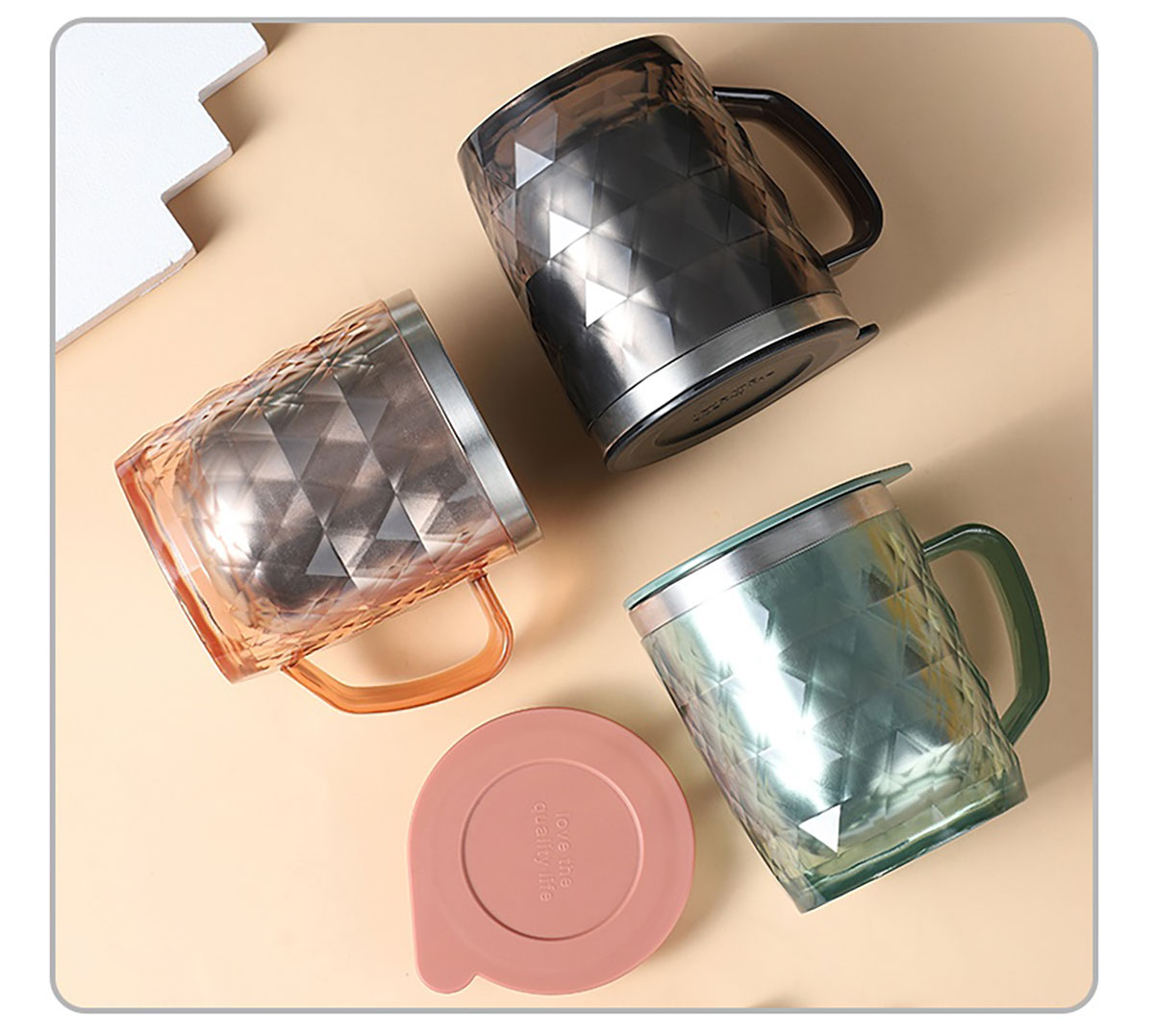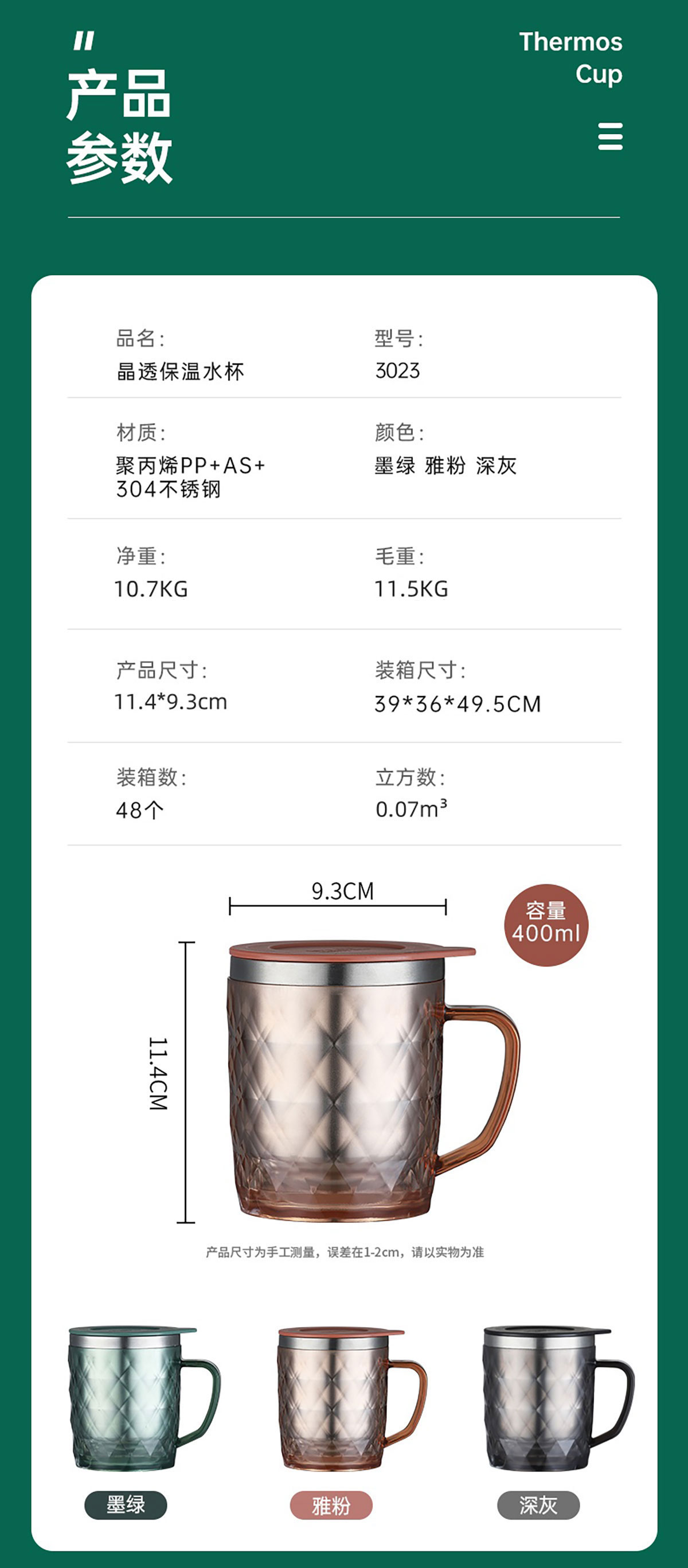 400ml菱形晶透保溫水杯