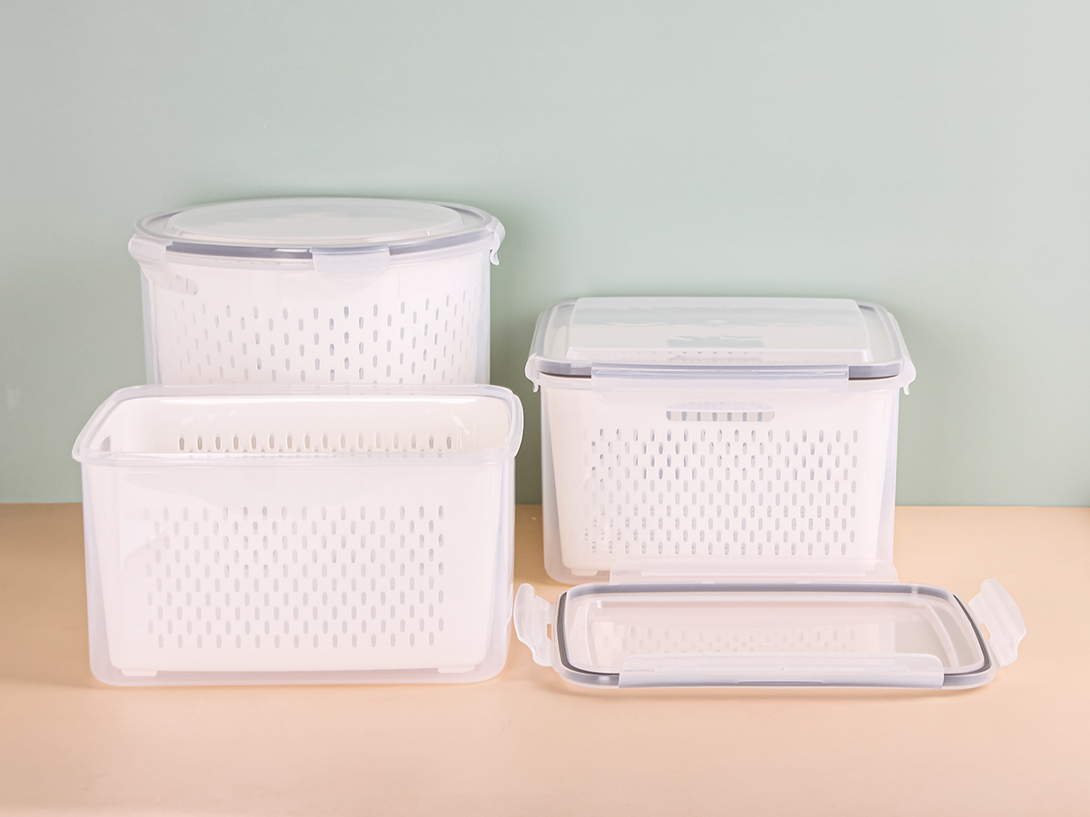 美時圓形/正方形/長方形密封瀝水保鮮盒(5200ml)