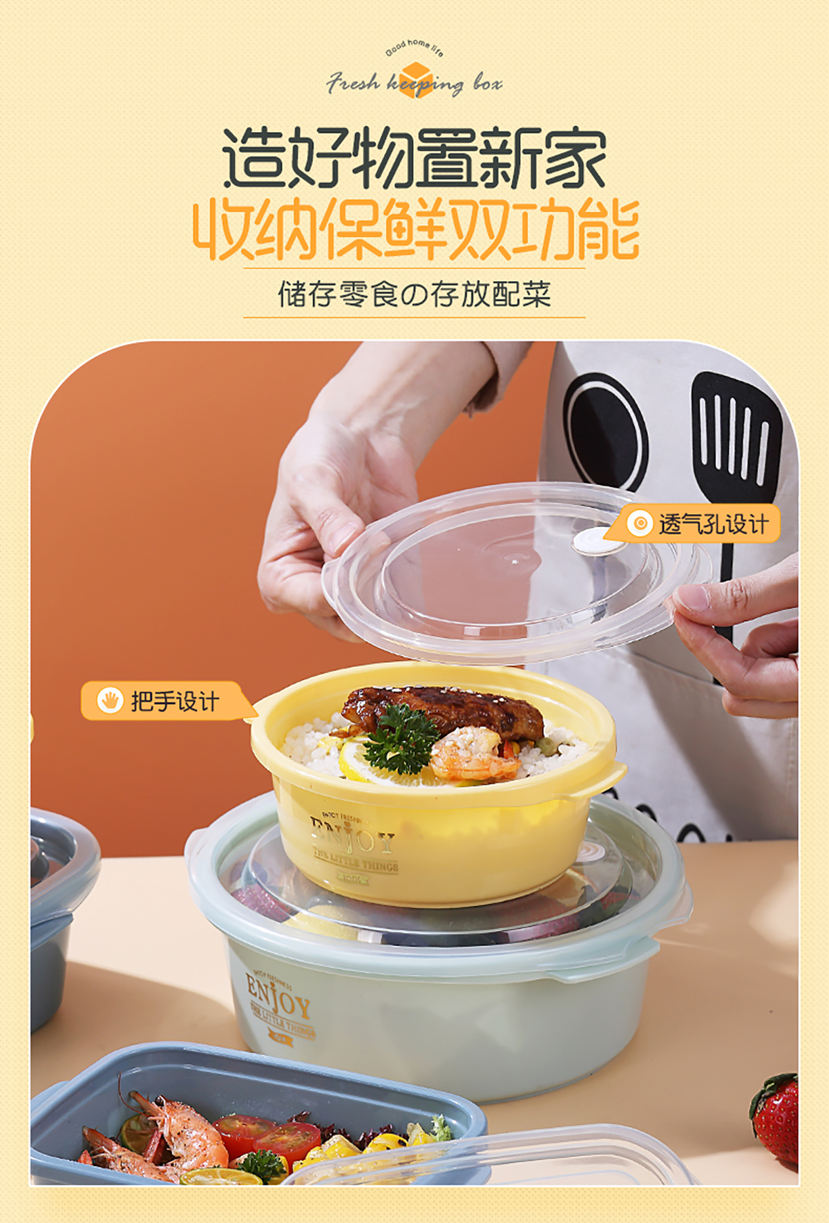 圓形輕便微波保鮮盒(小/大)(4個(gè)莊/3個(gè)莊)500ml/1300ml 2022新色