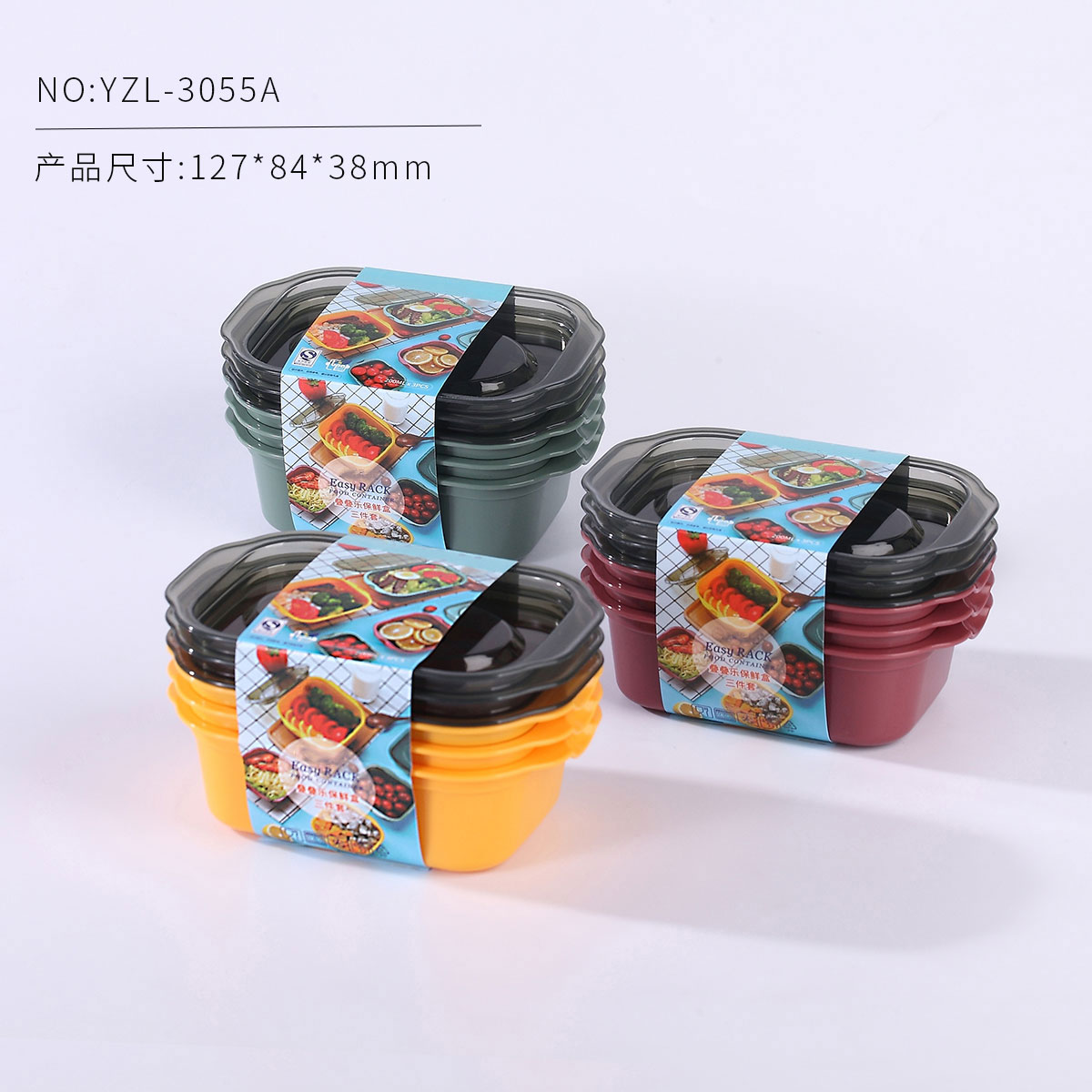 疊疊樂保鮮盒三件套(長方形)系列 22年新色