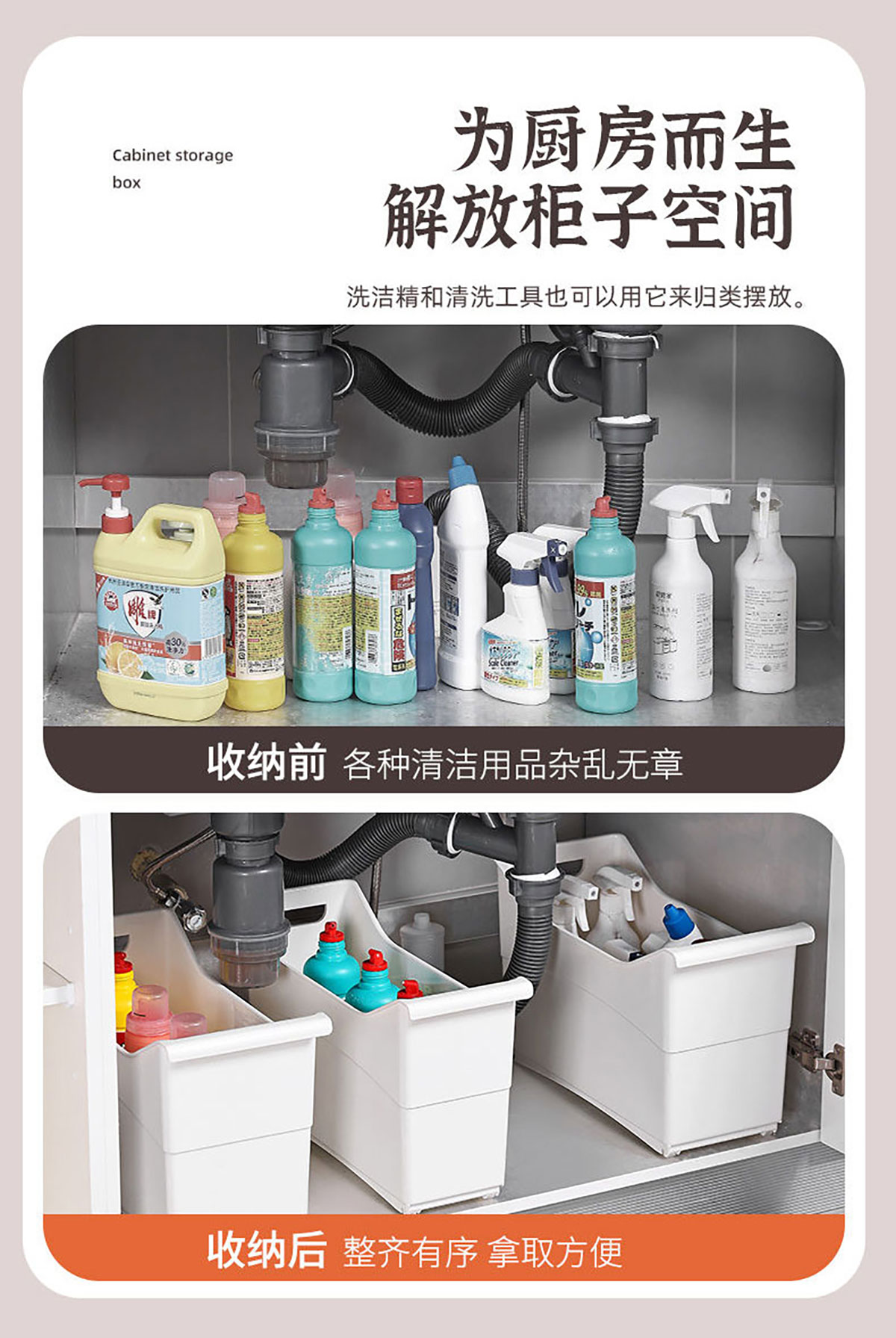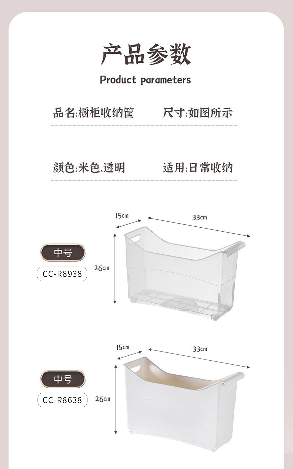 櫥柜收納筐(透明/實色 小號/大號)