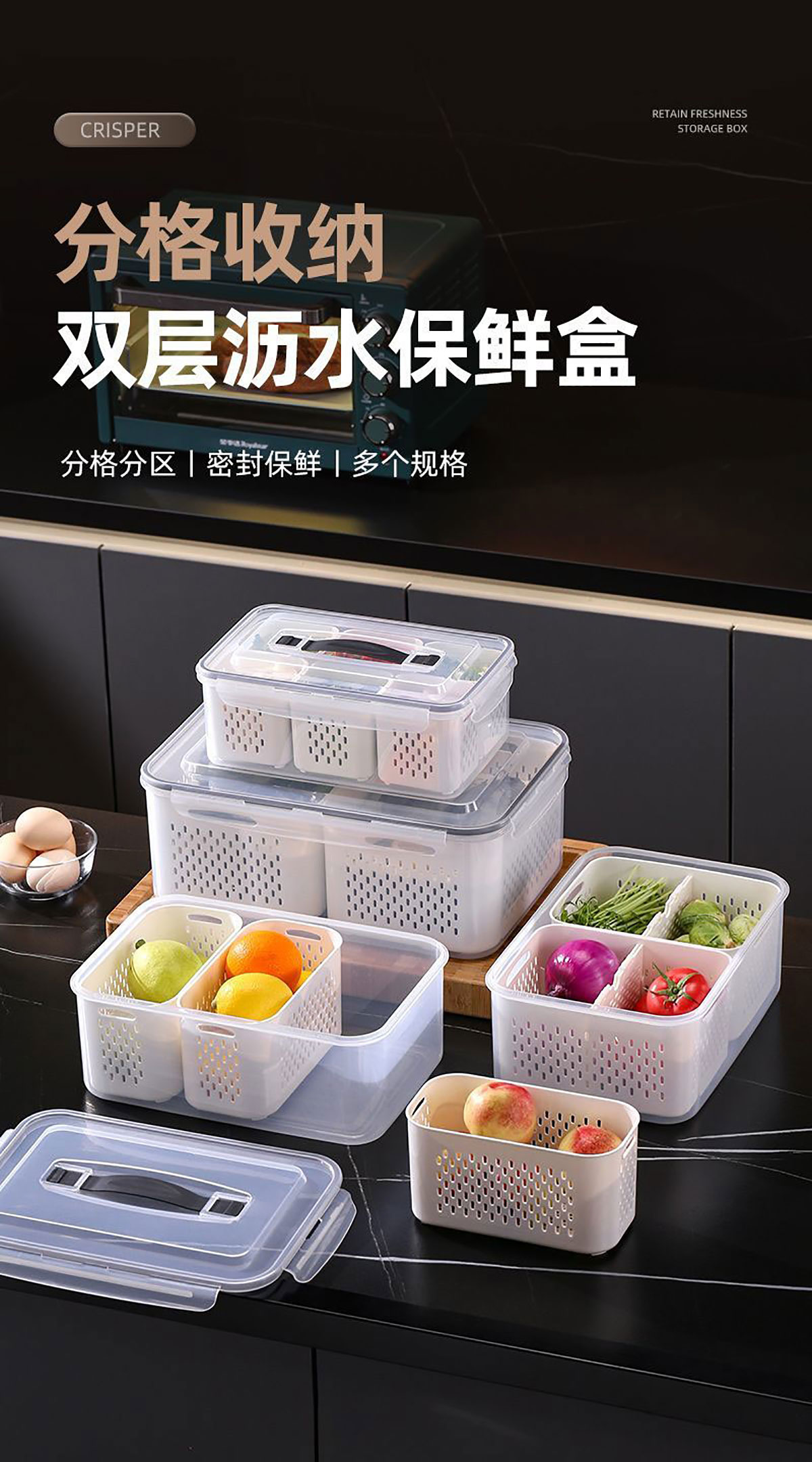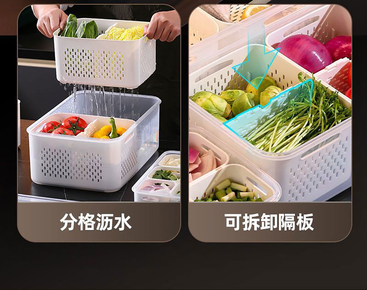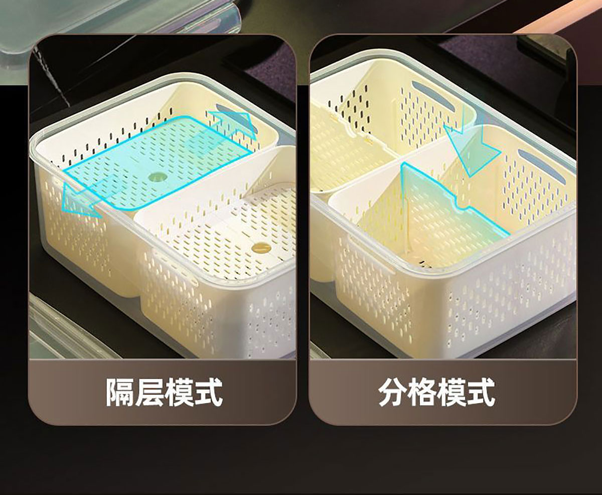 手提密封2格/3格/6格瀝水保鮮盒(小號(hào)/中號(hào)/大號(hào))