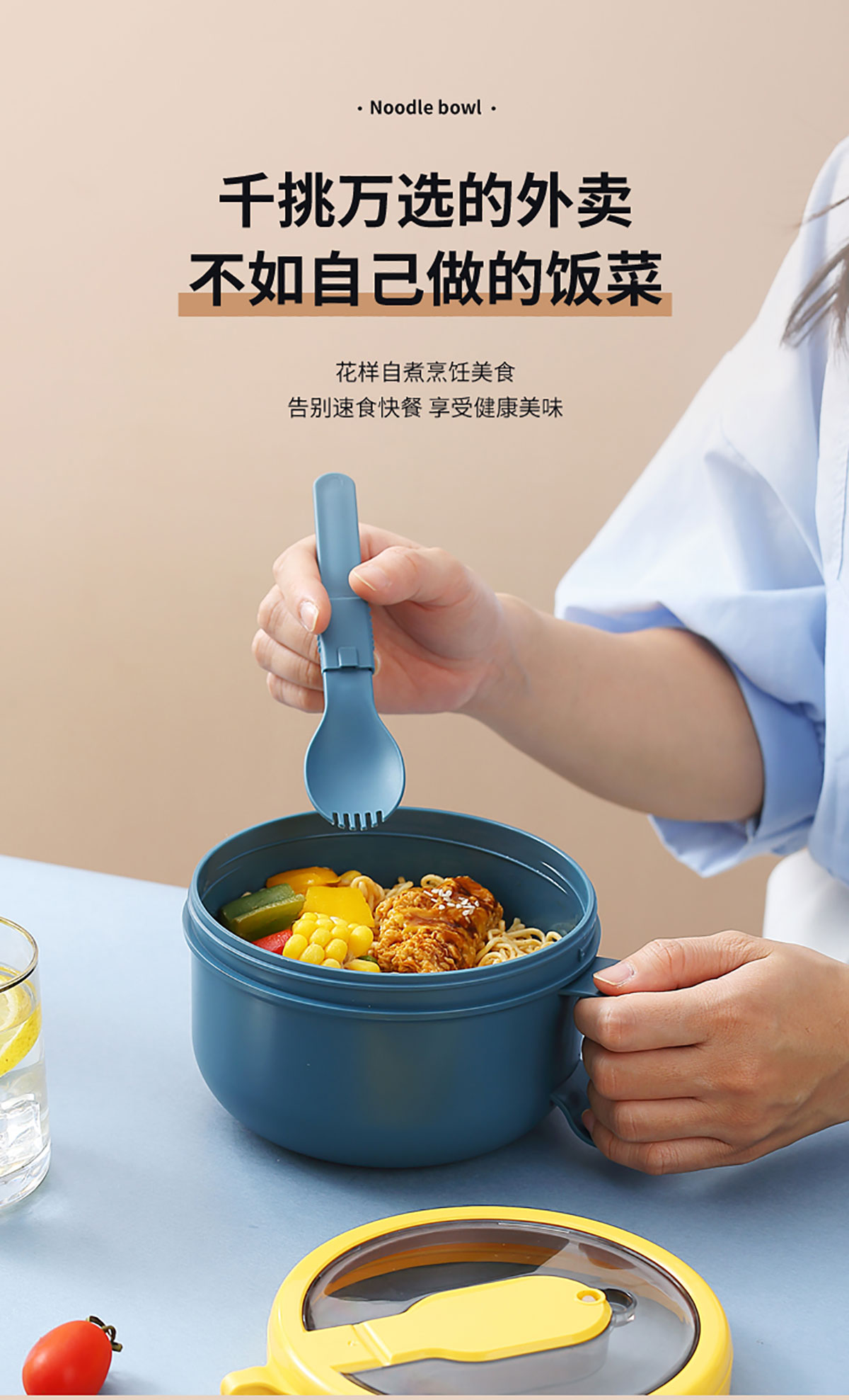 透明蓋塑料泡面碗850ml