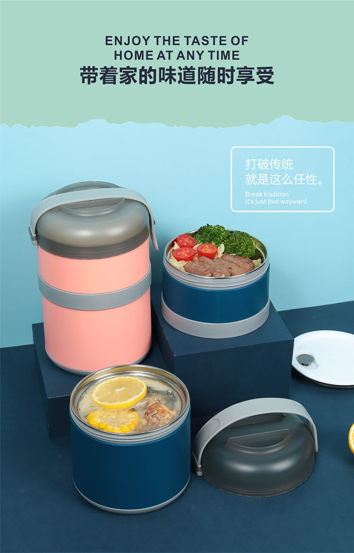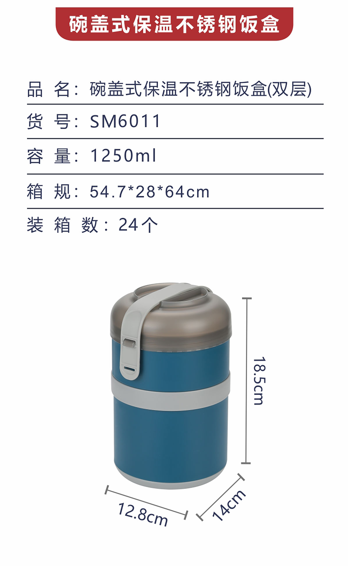 碗蓋式保溫不銹鋼飯盒雙層1250ml