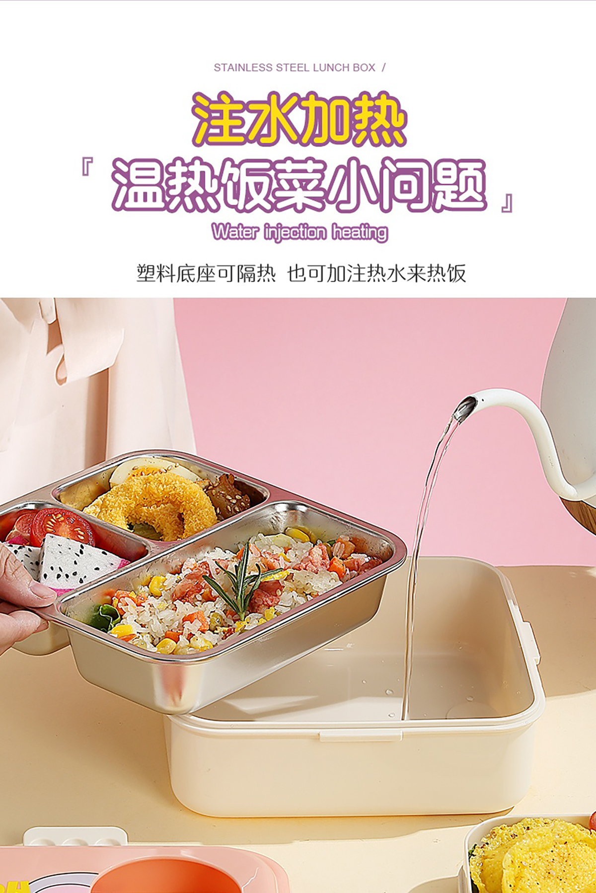 大象正方形不銹鋼飯盒1120ml+70ml