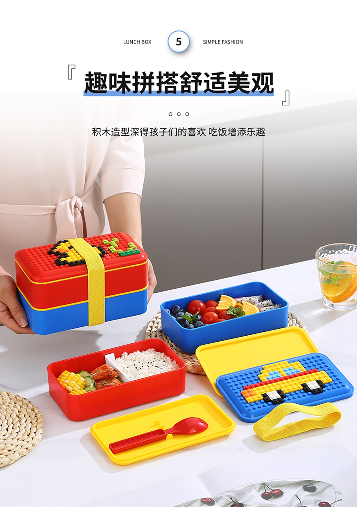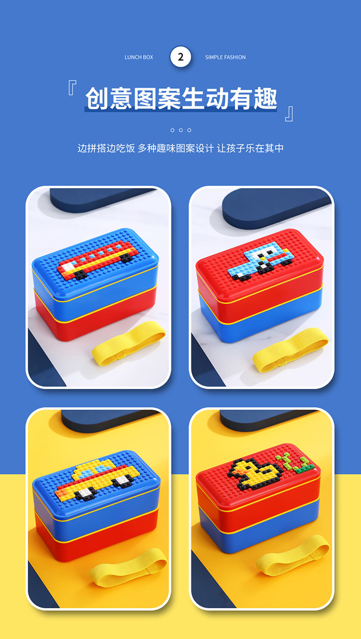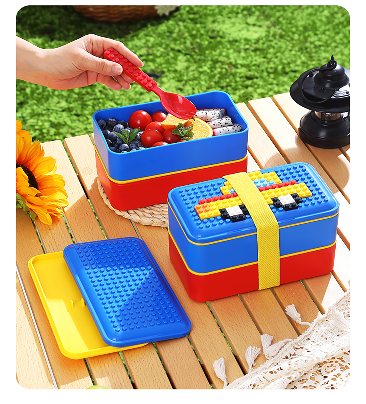 積木長(zhǎng)方雙層綁帶飯盒1000ml