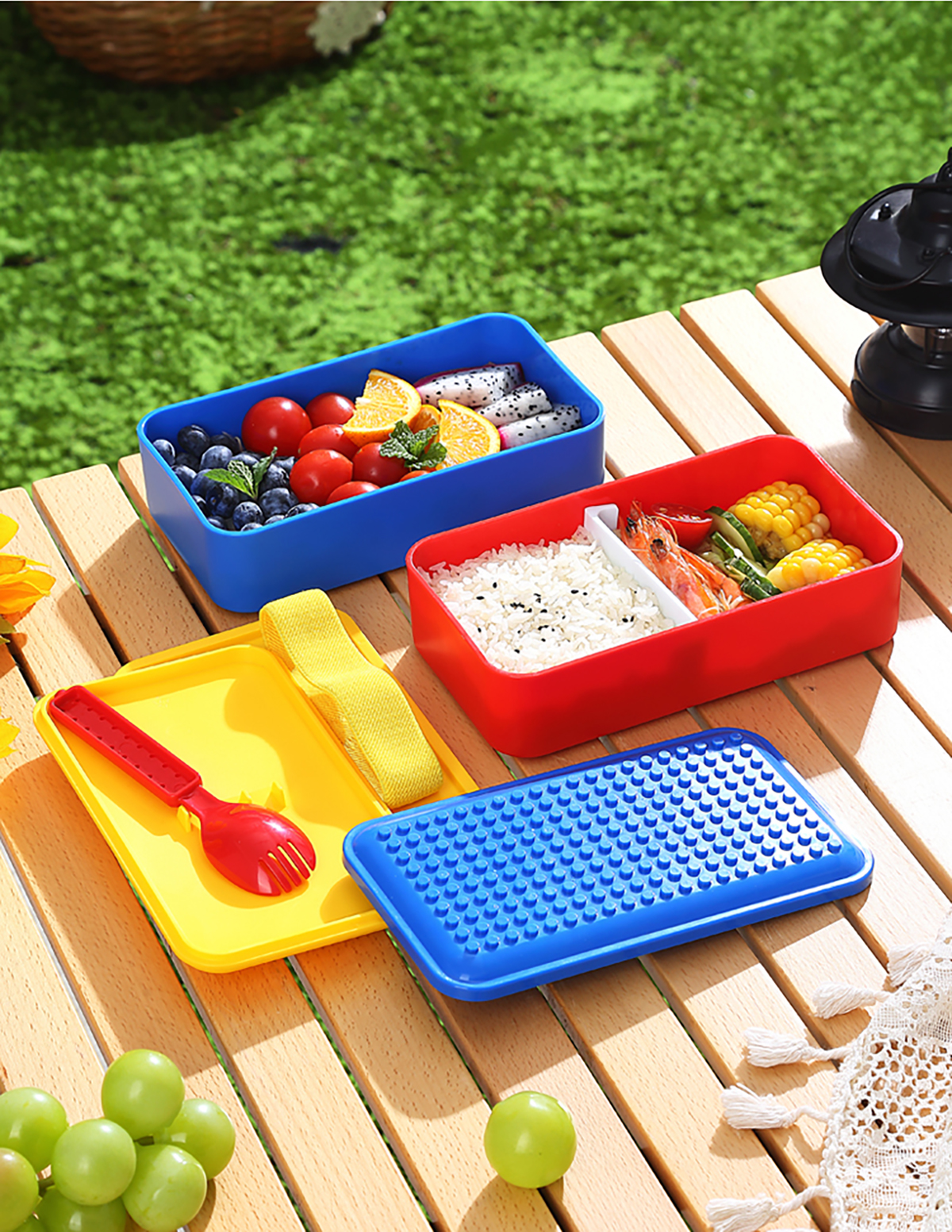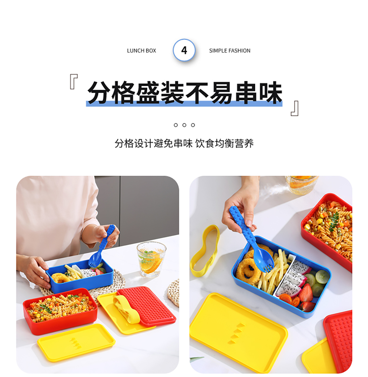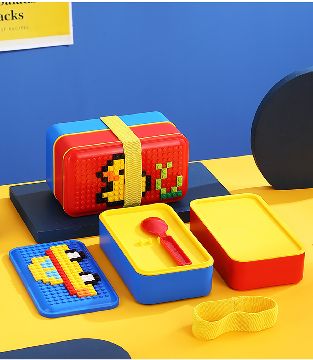 積木長(zhǎng)方雙層綁帶飯盒1000ml