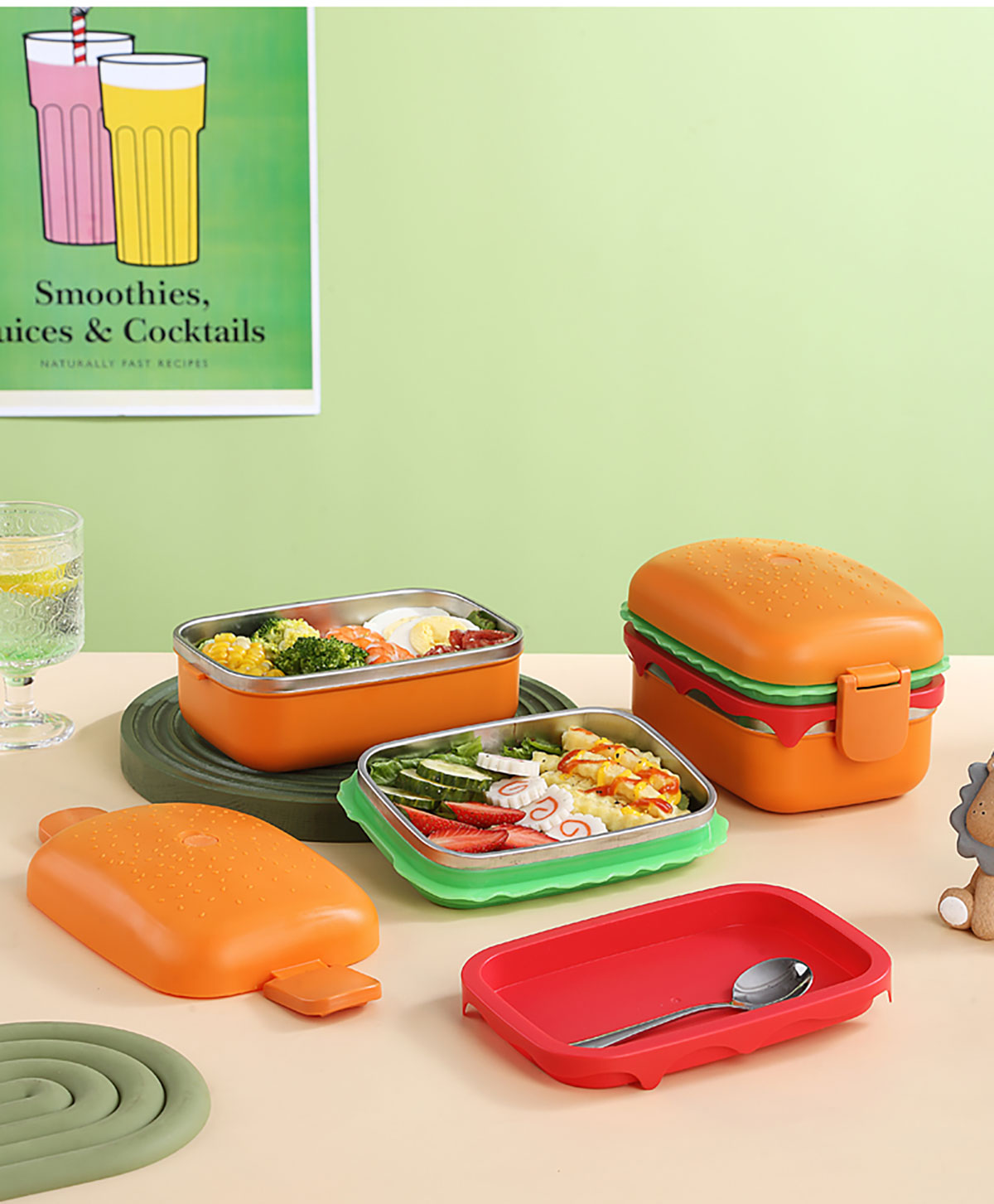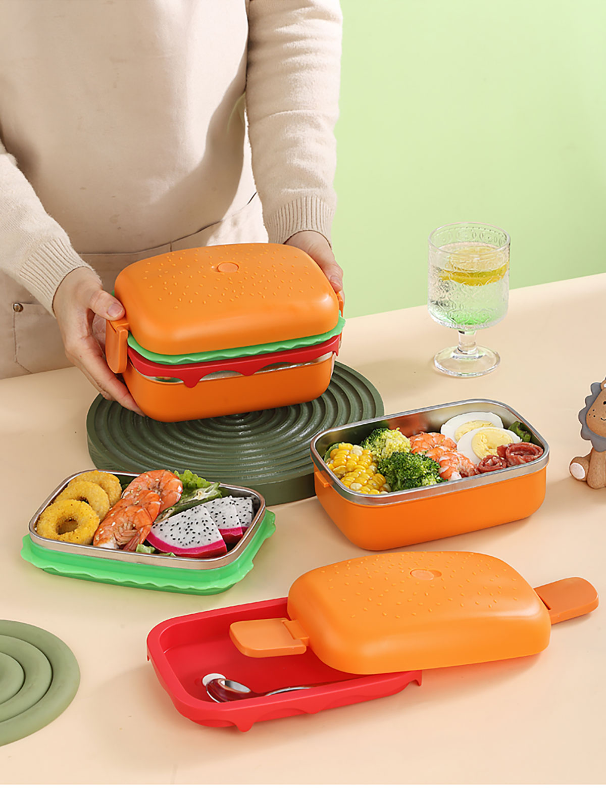 方形漢堡雙層不銹鋼餐盒(1360ml)