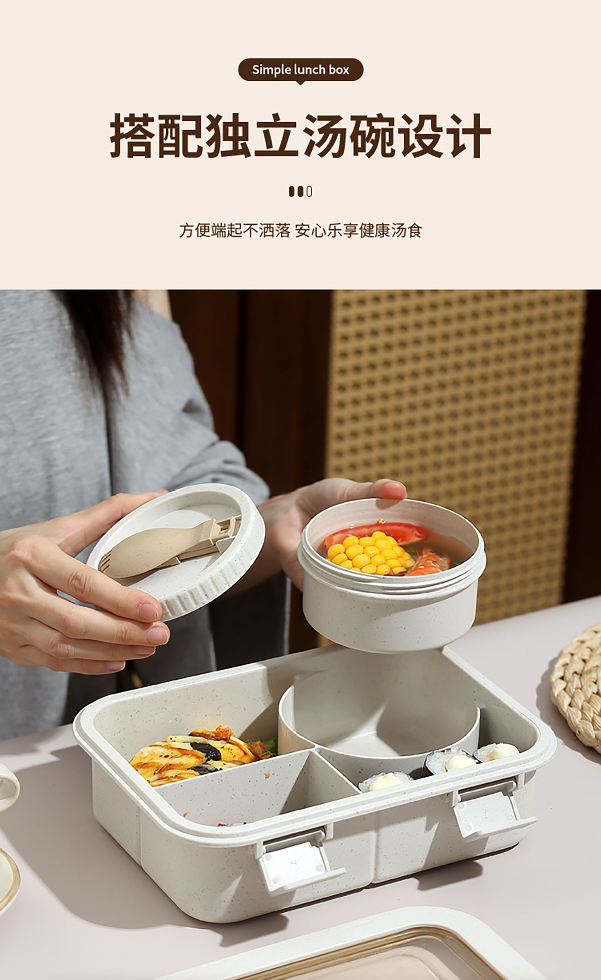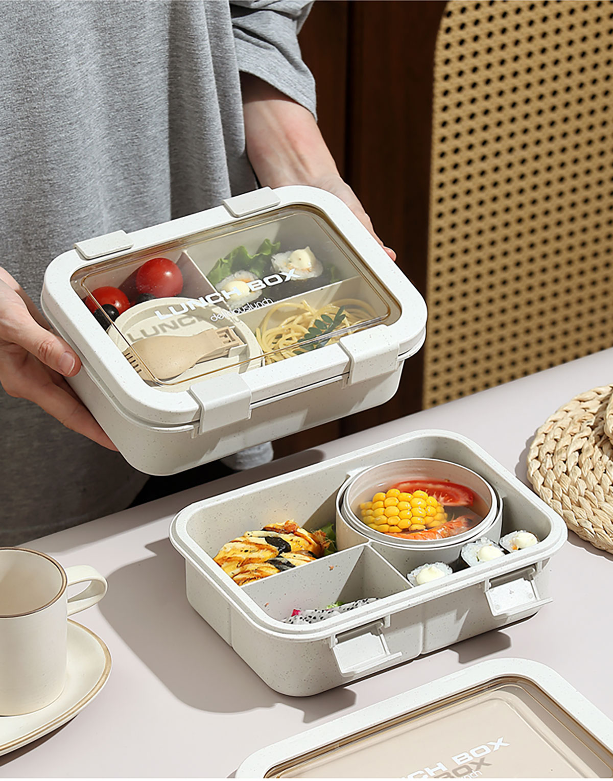 小麥款分格飯盒1250ml/湯碗250ml