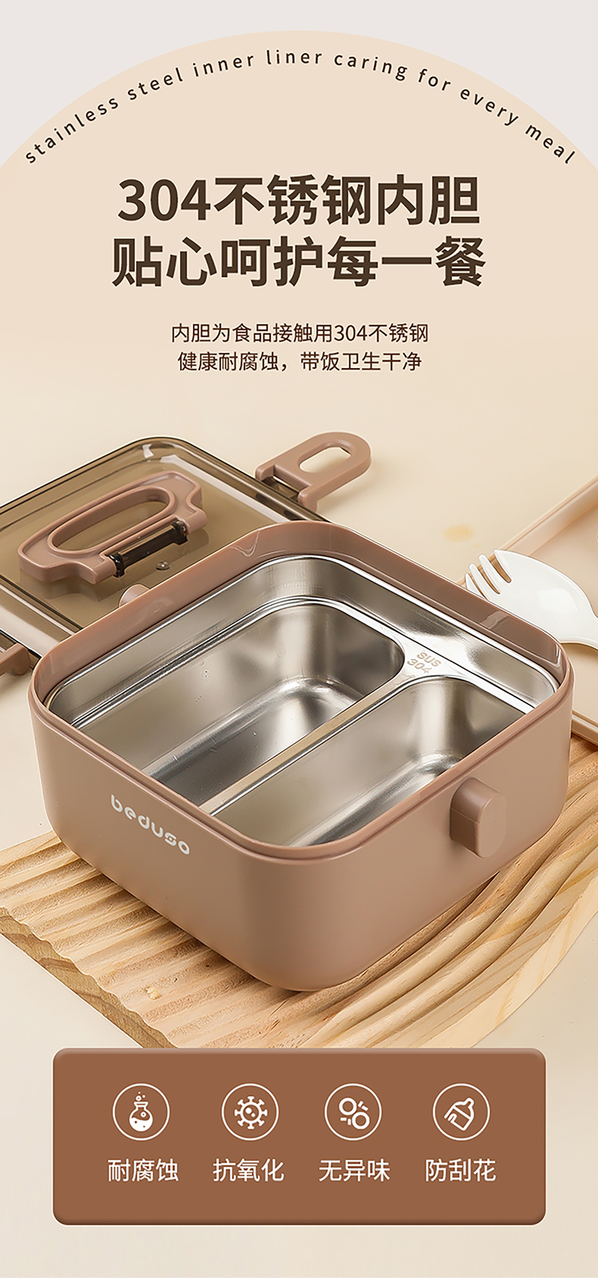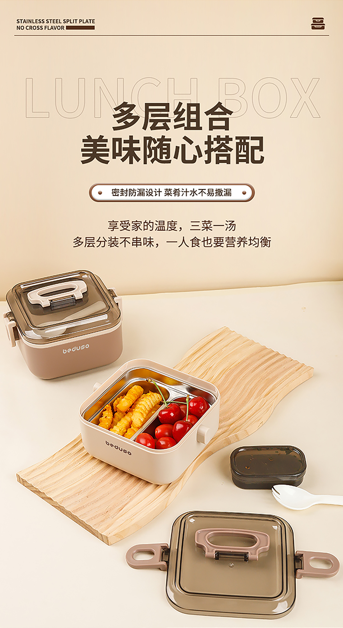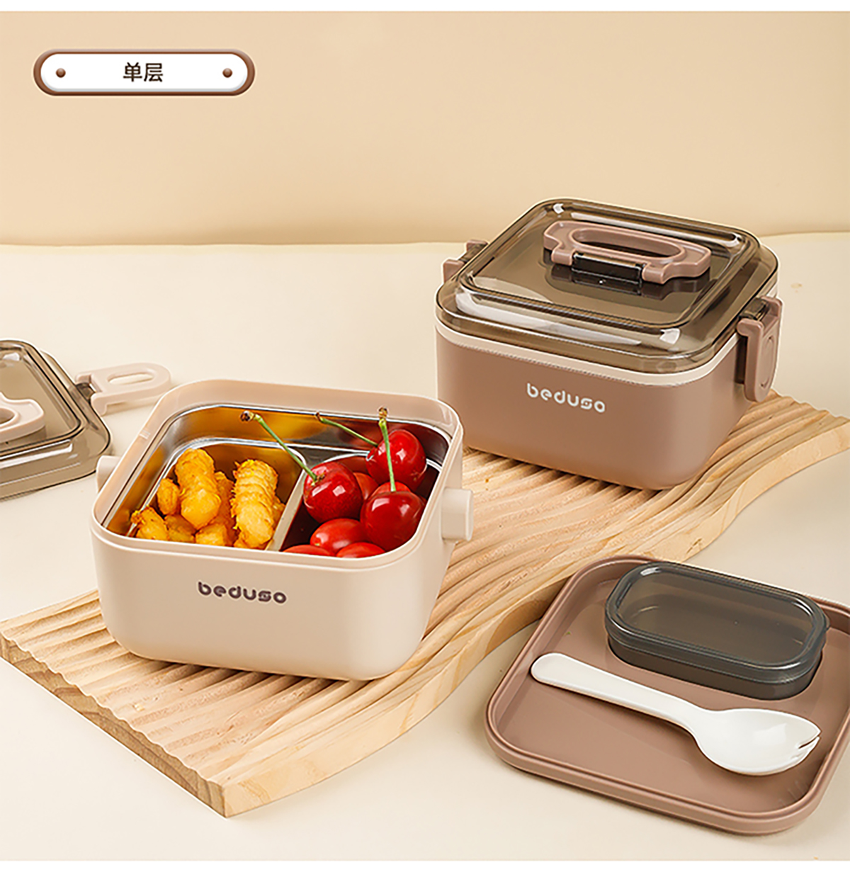 正方單層二格/雙層四格不銹鋼便當(dāng)盒