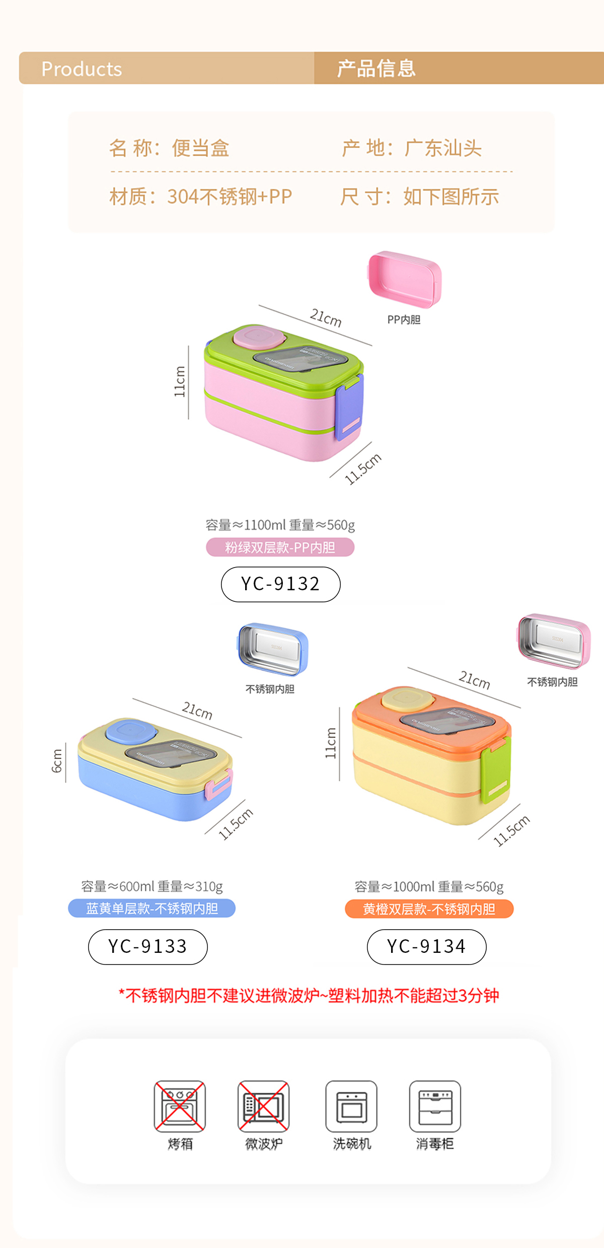 YC-9133(不銹鋼單層):210*115*60mm/600ML