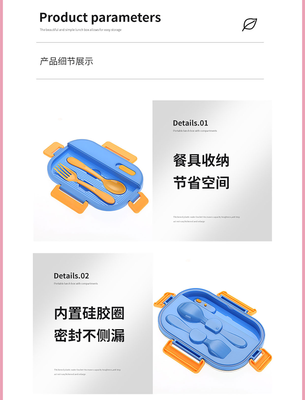 SWY-T208(水杯套裝):飯盒:215*149*71mm/1000ml 水壺:直徑82*高161mm/480ml