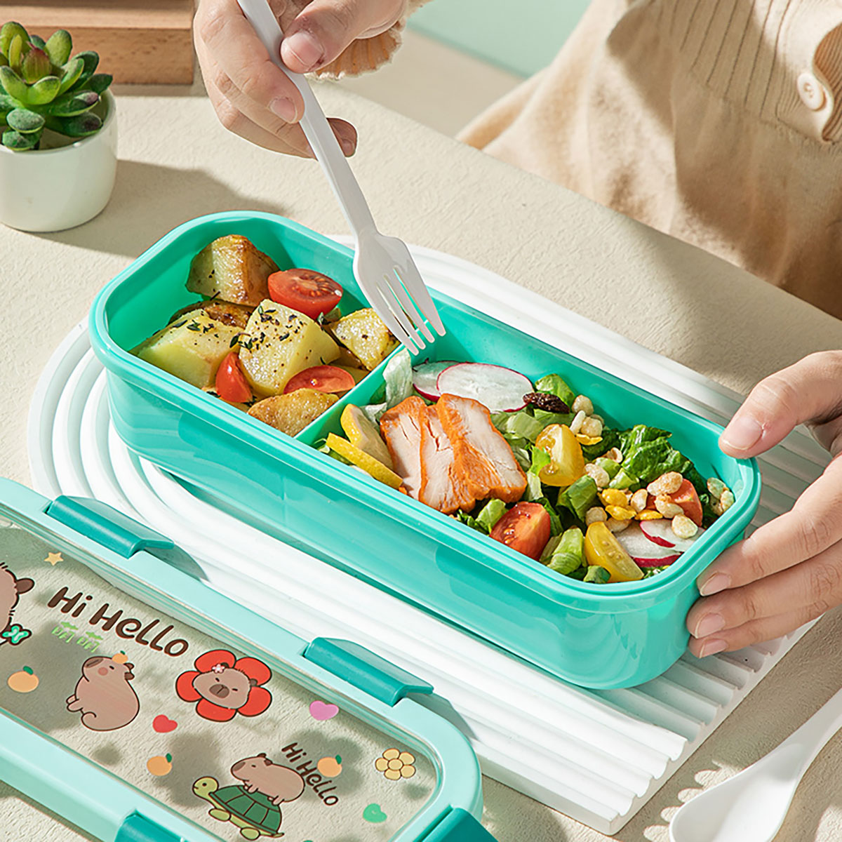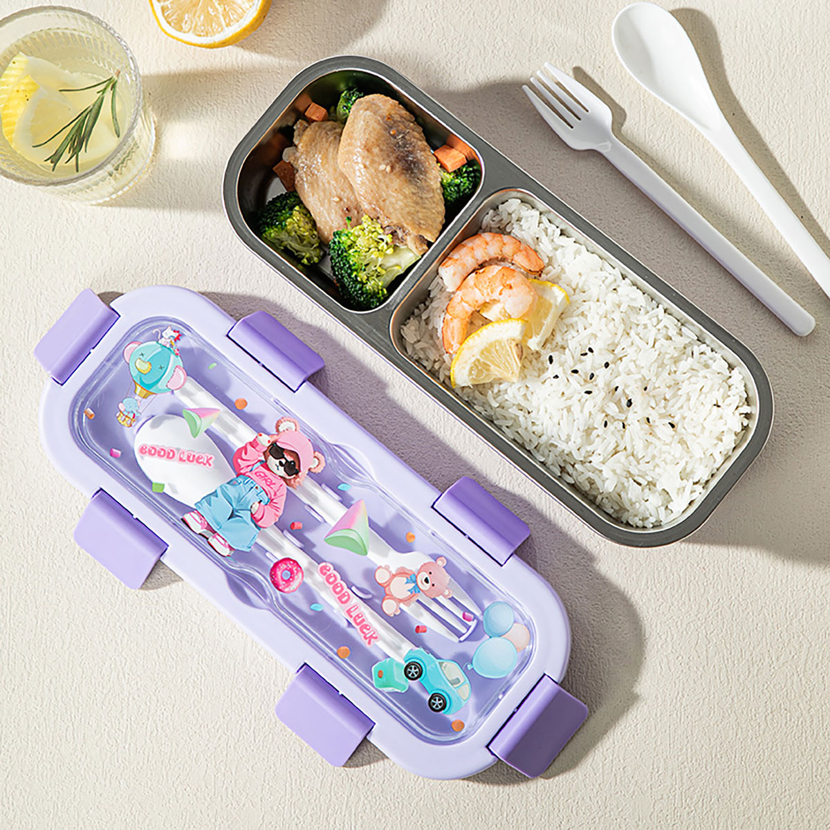 (印花款)愛悅長方形便當(dāng)盒兩格/三格可選 塑料款/不銹鋼款